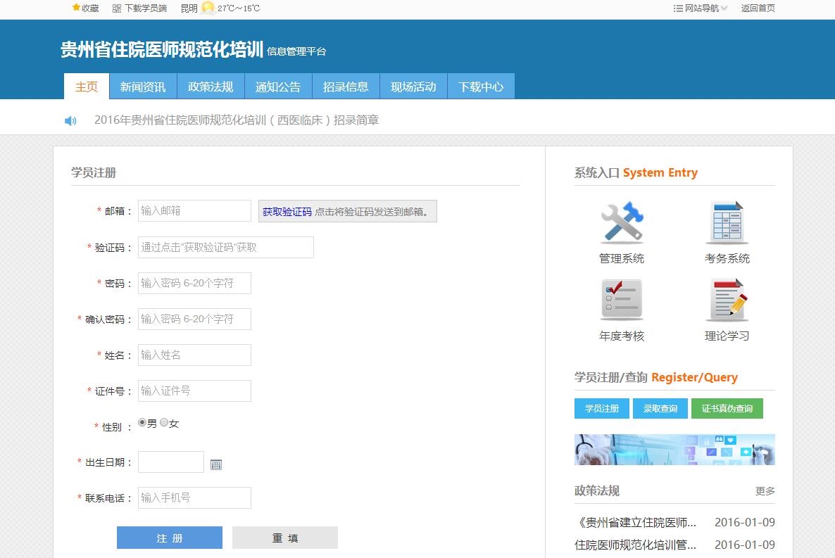 2018贵州住院医师规范化培训平台:http://gzgp.yiboshi.com